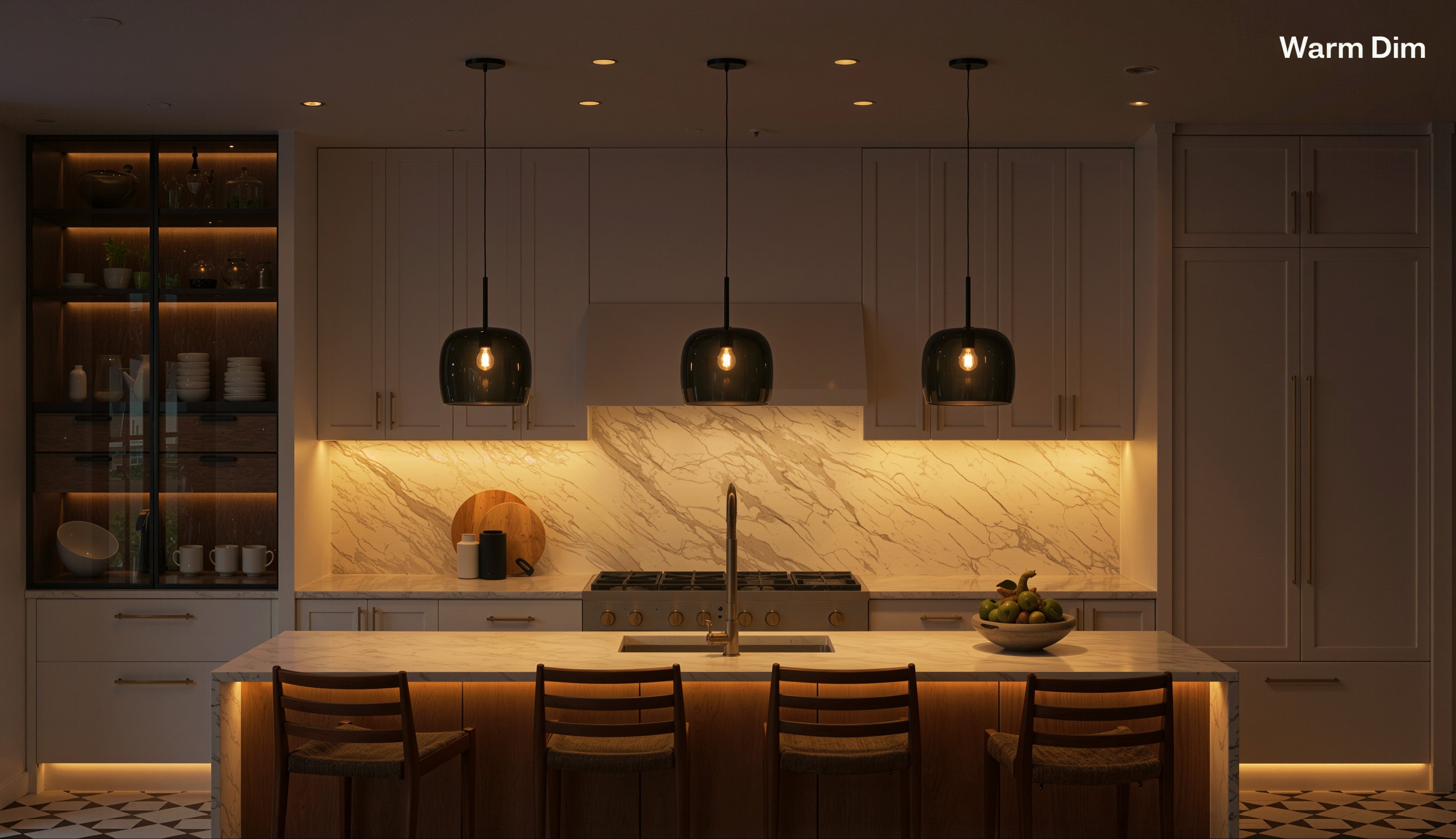 Move the slider to feel the cozy glow of warm dimming
